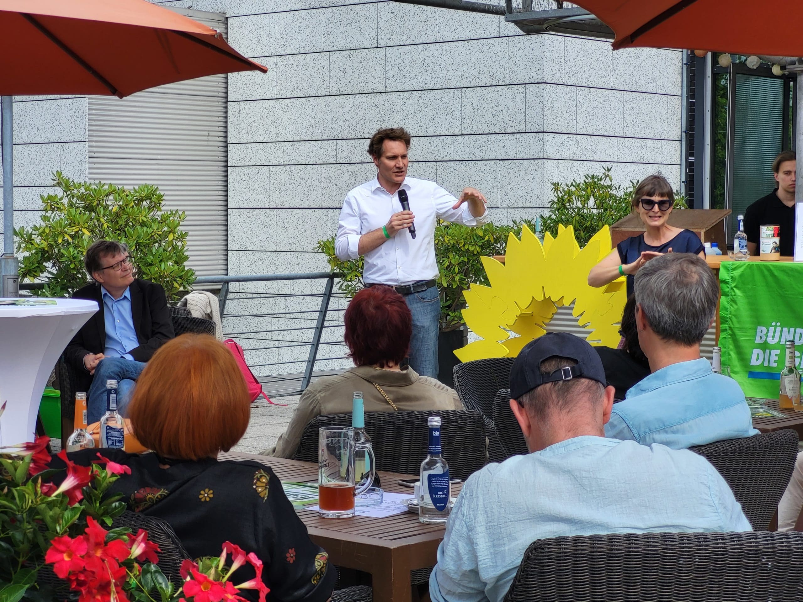 Sonntag 02. Juli: Auf der Dachterasse des Cinecitta gibt Ludwig Hartmann, Fraktionsvorsitzender und zusammen mit Katharina Schulze Spitzenkandidat für die Landtagswahl, den Startschuss für die heiße Phase. In einer mitreißenden Rede hat er uns alle darauf eingeschworen, in den kommenden 98 Tagen dafür zu sorgen, dass an uns Grünen in Bayern kein Weg vorbei geht und der Stillstand im Klimaschutz und bei nahezu allen anderen Zukunftsthemen beendet wird.